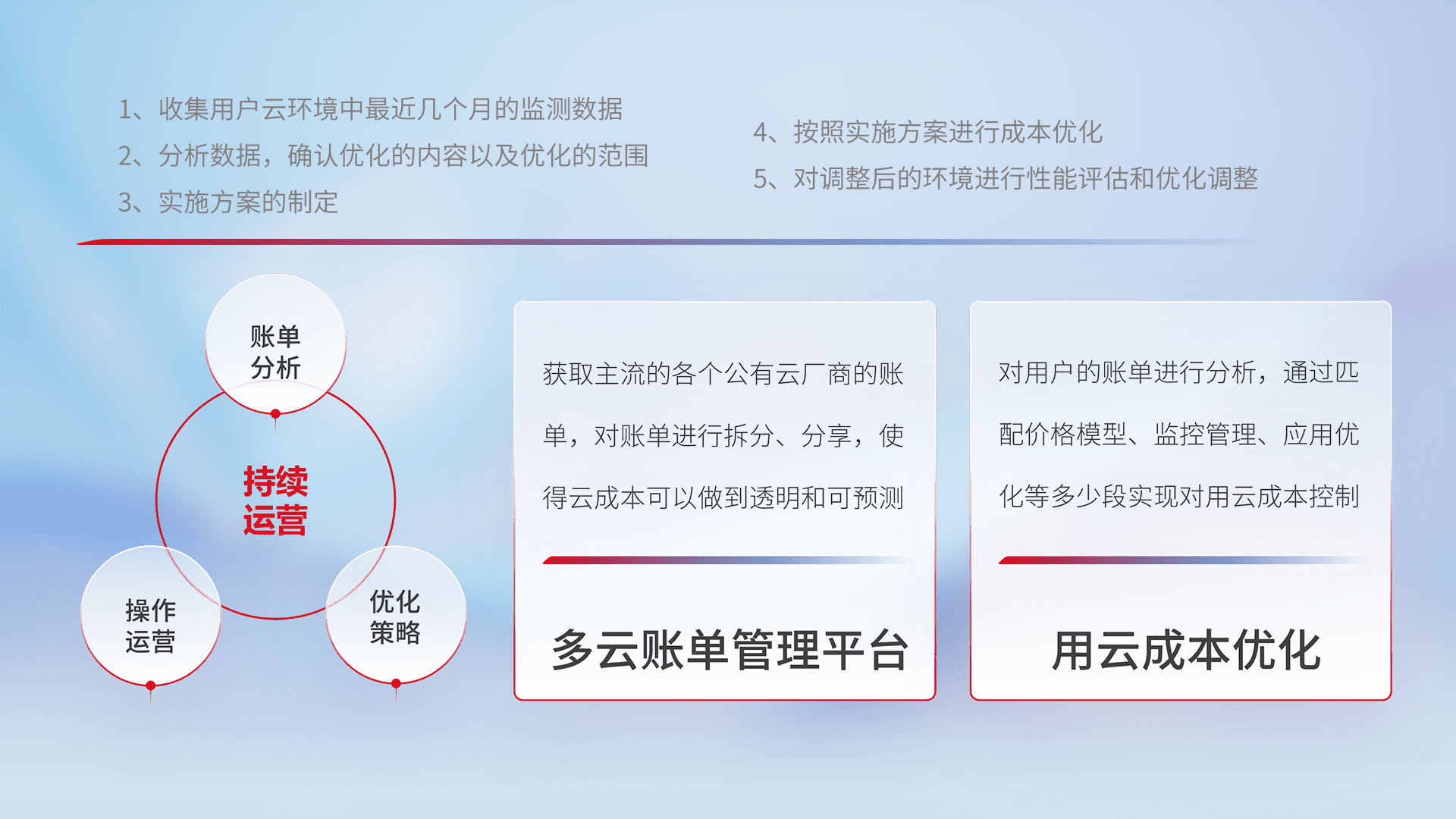 监控业务系统资源开销,,,对资源的消耗精确计量,,实现费用的透明化管理,,,不断提升资源使用率,,,调整资源购买方式,,,降低资源费用成本,,用云成本可预测、、用云费用可优化,,云资源配额有据可依。。